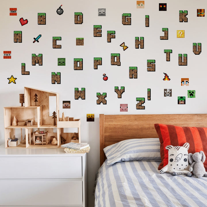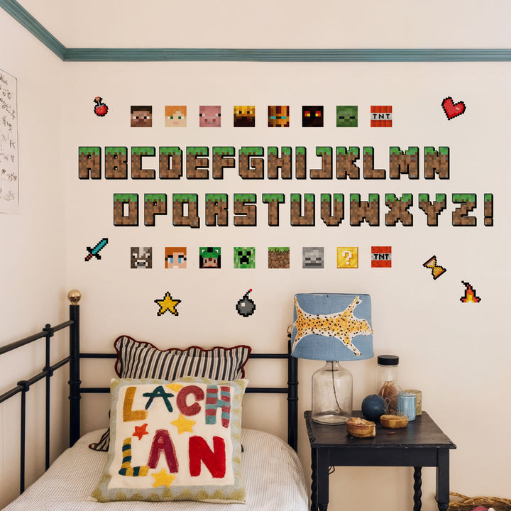 Naklejki na ścianę Alfabet Pixel EN | Pikselowe Litery dla Dzieci