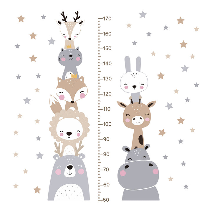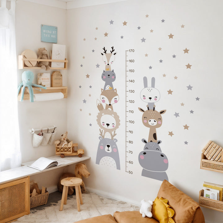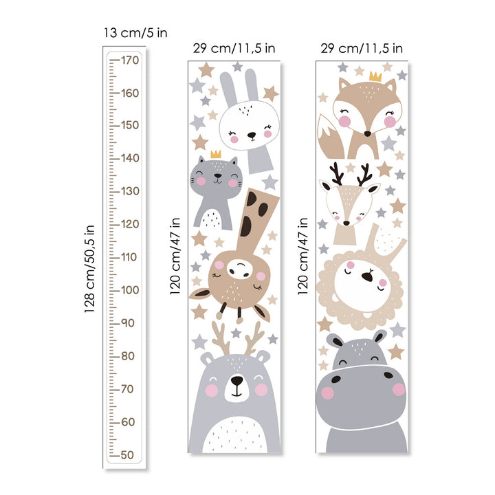 Naklejki na ścianę Miarka Wzrostu ze Zwierzętami do Pokoju Dziecka