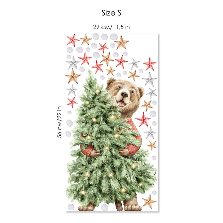 Naklejki na ścianę Świąteczny Miś z Choinką | Dekoracje Okienne