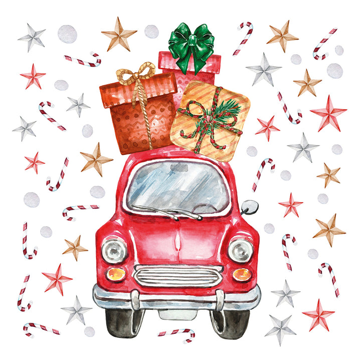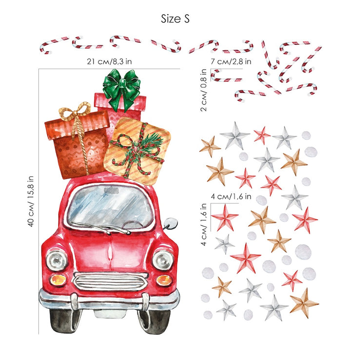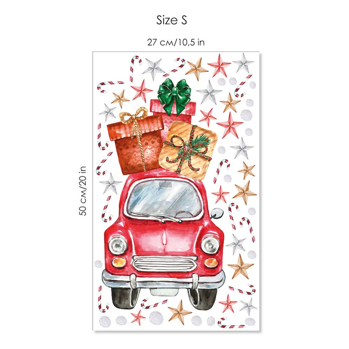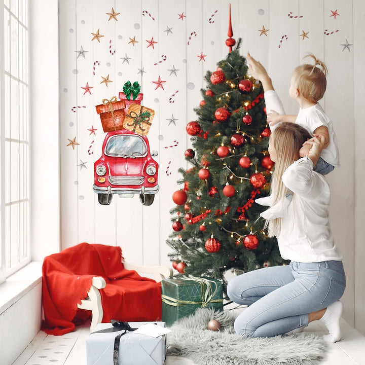 Naklejki na ścianę Czerwony Samochód z Prezentami | Świąteczna Dekoracja
