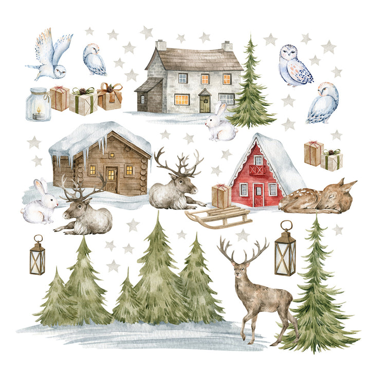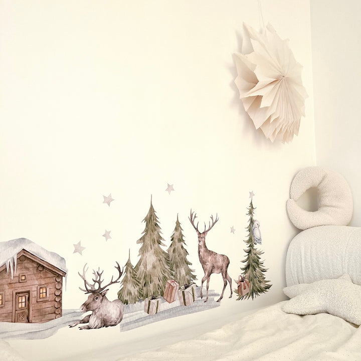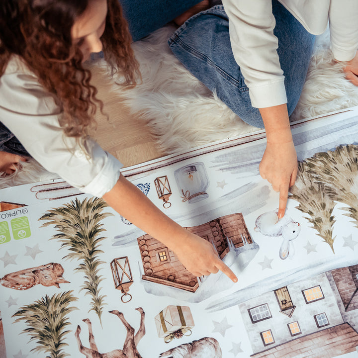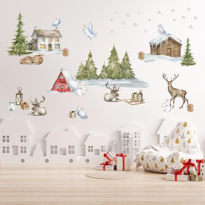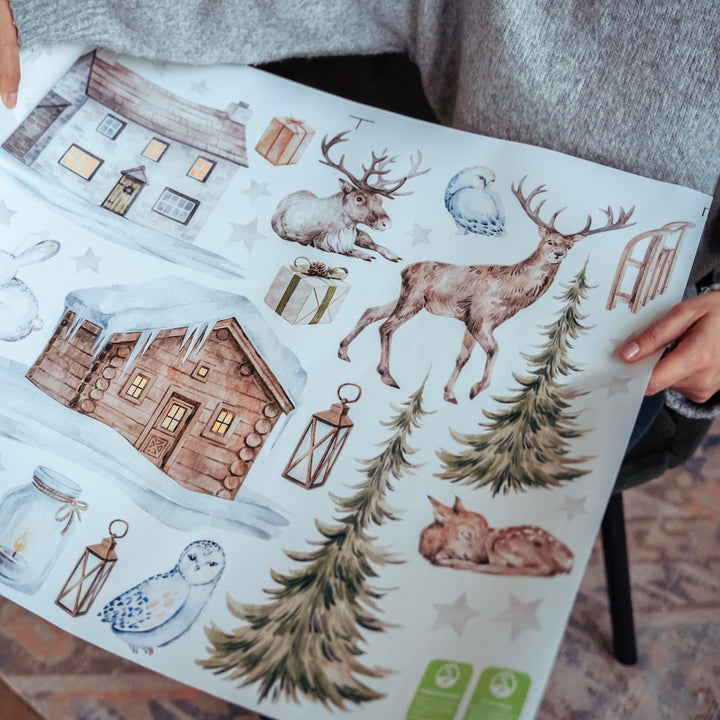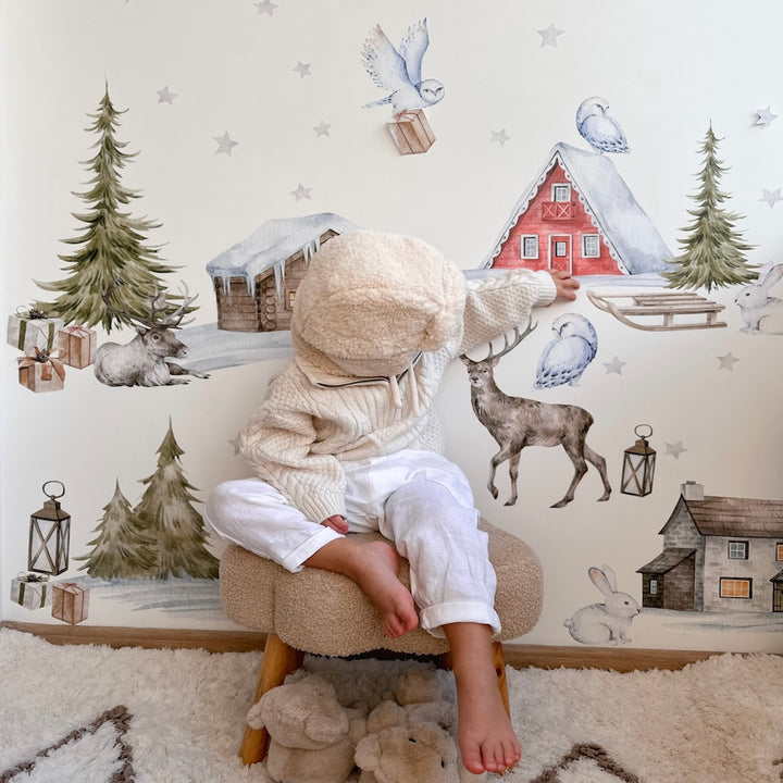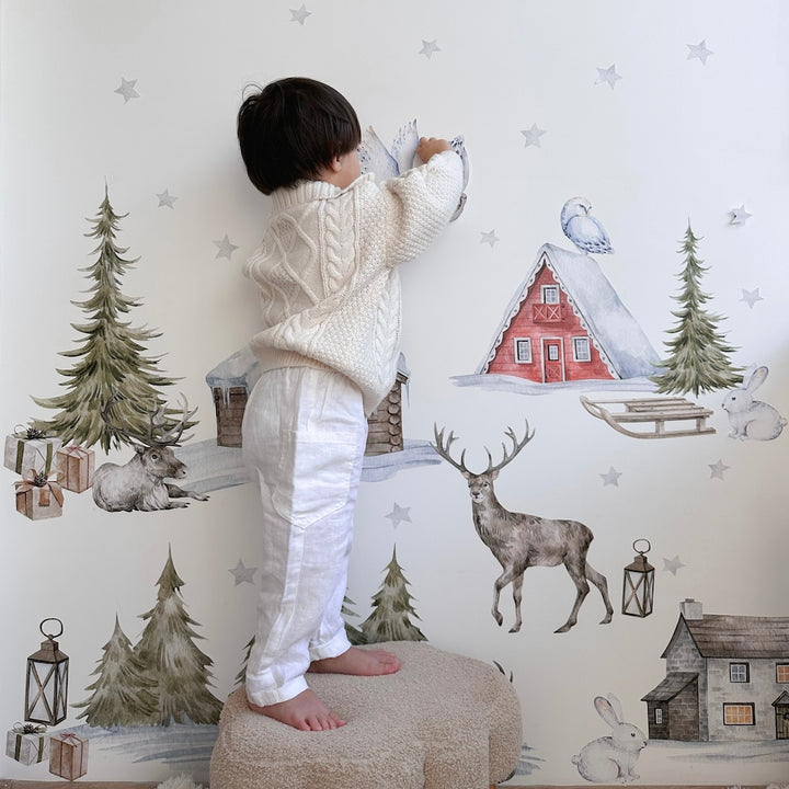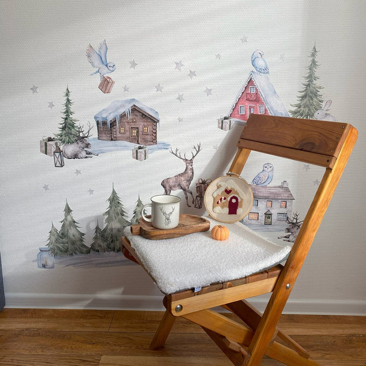 Wprowadź świąteczny klimat do swojego domu dzięki naklejkom na ścianę z jeleniami, sowami, ośnieżonymi drzewami, domkami i prezentami. Idealne do pokoju dziecka, salonu czy dekoracji sezonowej. Ekologiczne, łatwe w aplikacji i bezpieczne.