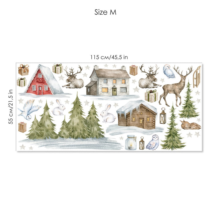 Naklejki na ścianę Świąteczne z Jeleniami i Sówkami | Zimowy Las