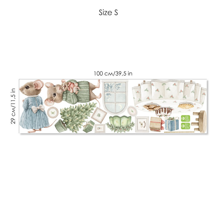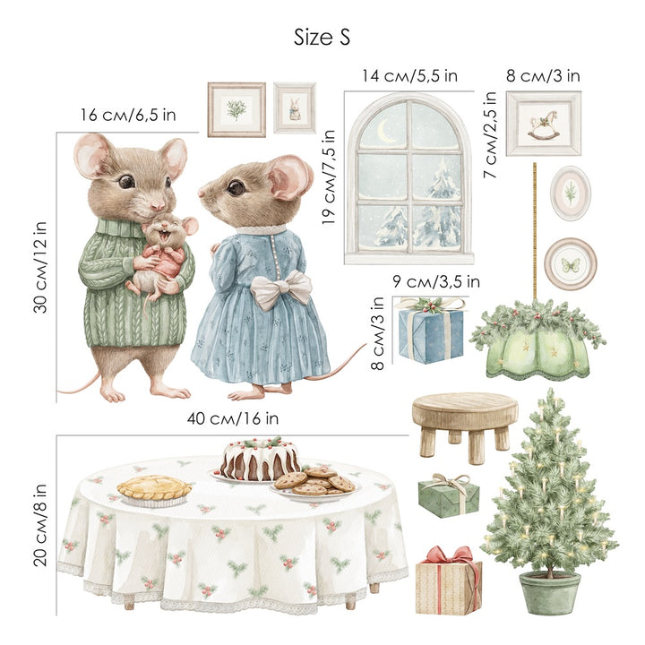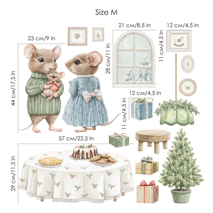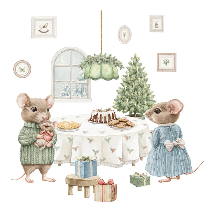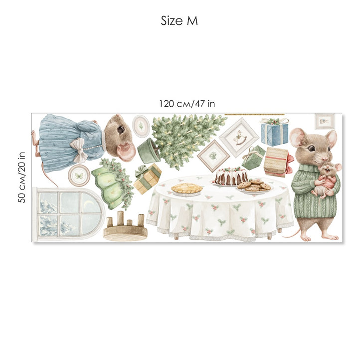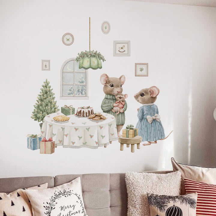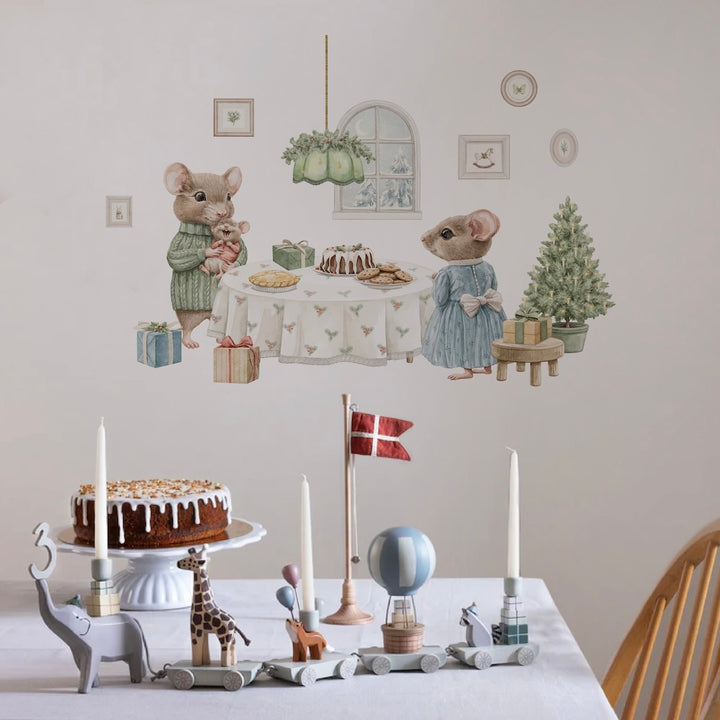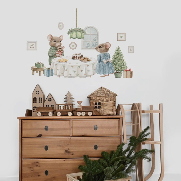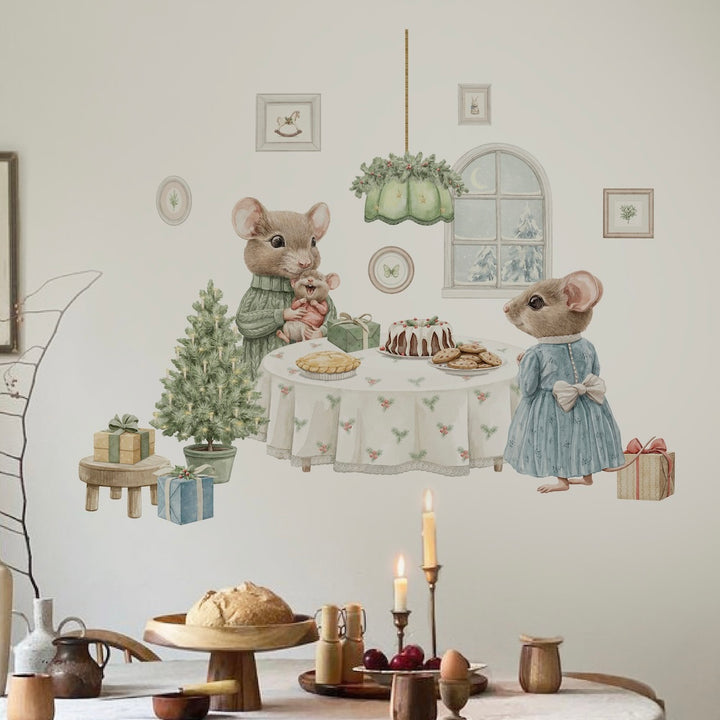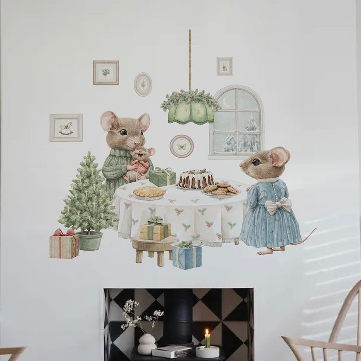 Naklejki na ścianę Świąteczne Myszki | Choinka i Stół | Dekoracja Pokoju