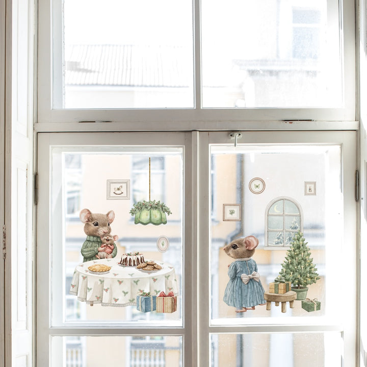 Wprowadź magię świąt z naklejkami na ścianę Świąteczne Myszki. Urocze myszki, choinka, prezenty i świąteczny stół stworzą ciepłą atmosferę w pokoju dziecka. Ekologiczne, łatwe w aplikacji, drukowane w Polsce.