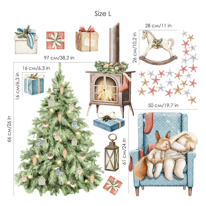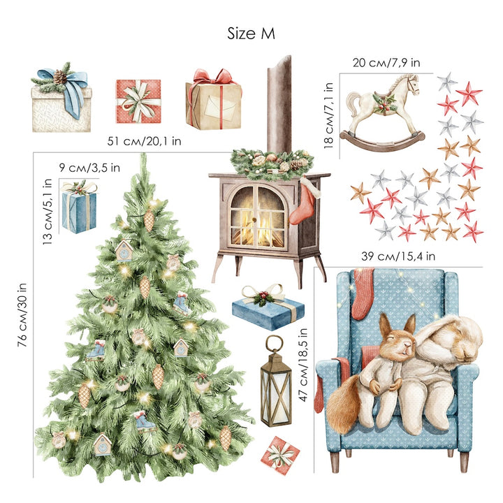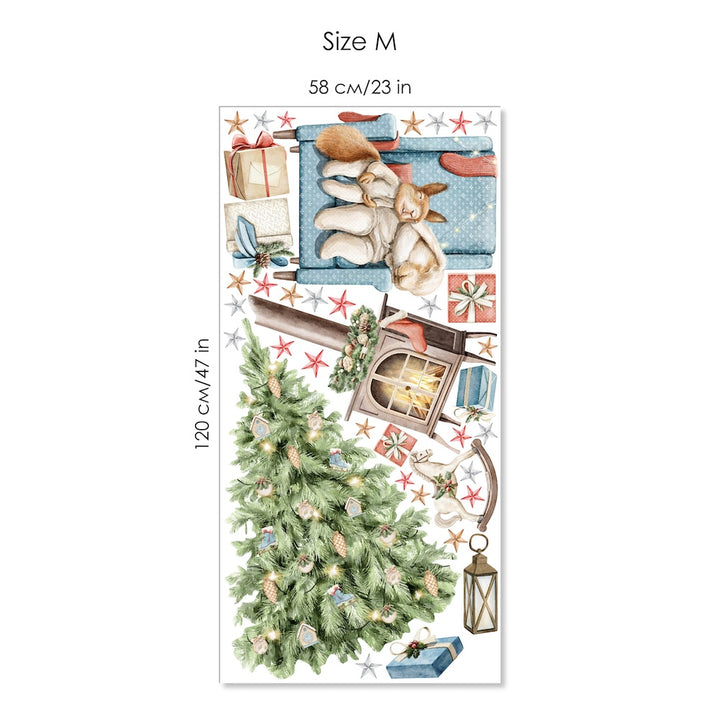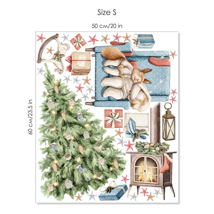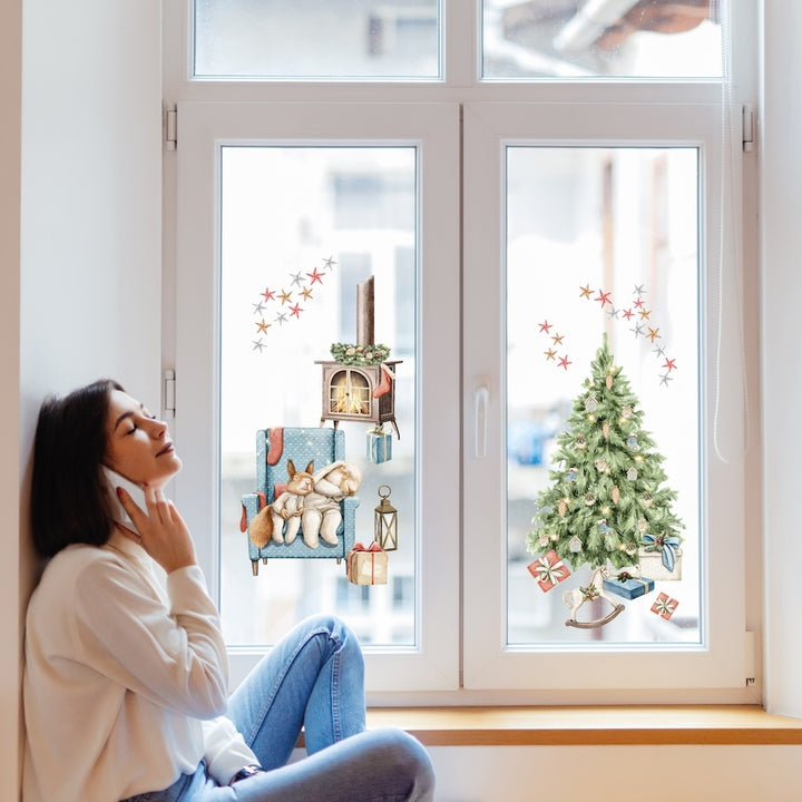 Ciepły, świąteczny klimat w Twoim domu! Naklejki z kominkiem, choinką, prezentami i uroczymi zwierzątkami tworzą magiczną dekorację. Ekologiczne, bezpieczne i łatwe w aplikacji — idealne do pokoju dziecka, salonu lub przedszkola....