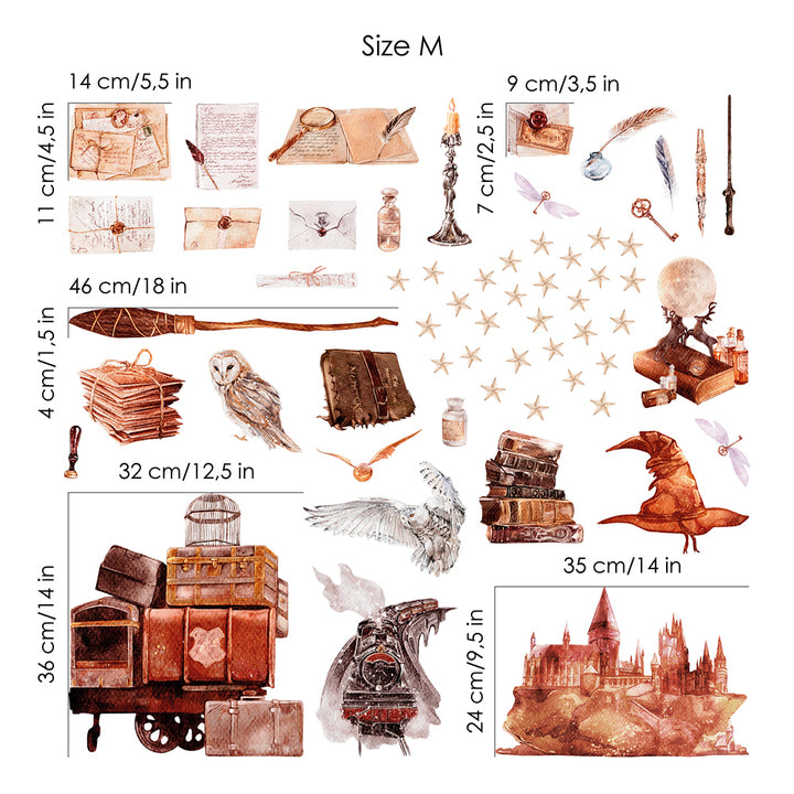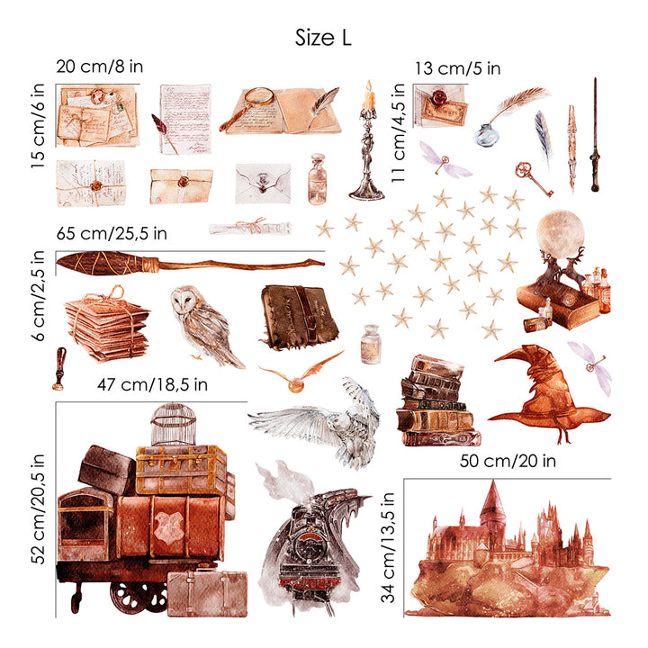 Naklejki na ścianę Czarodzieje | Księgi, Sowy i Zamek Magii