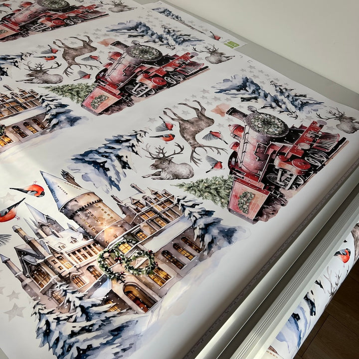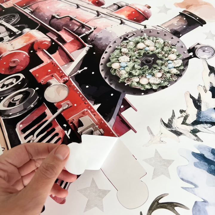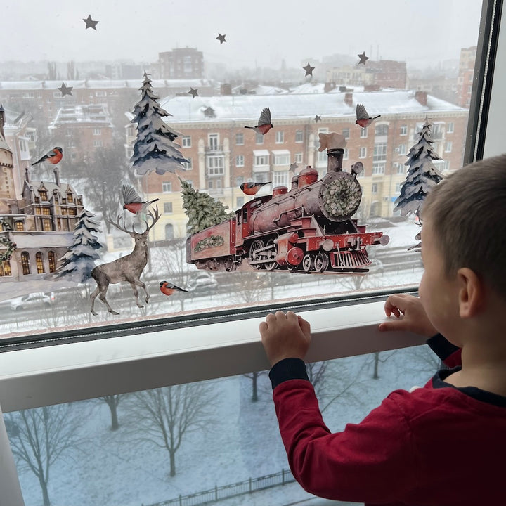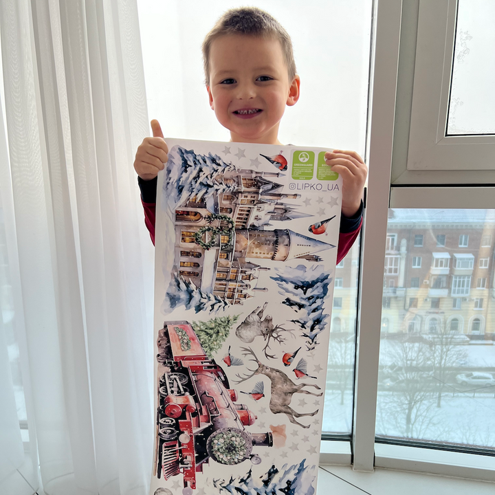 Naklejki na ścianę z pociągiem Polar Express, zamkiem i reniferami to idealna dekoracja świąteczna do pokoju dziecka lub salonu. Ekologiczne, łatwe w aplikacji i drukowane w Polsce – tworzą magiczną, zimową atmosferę w kilka chwil. Drukowane w Polsce.