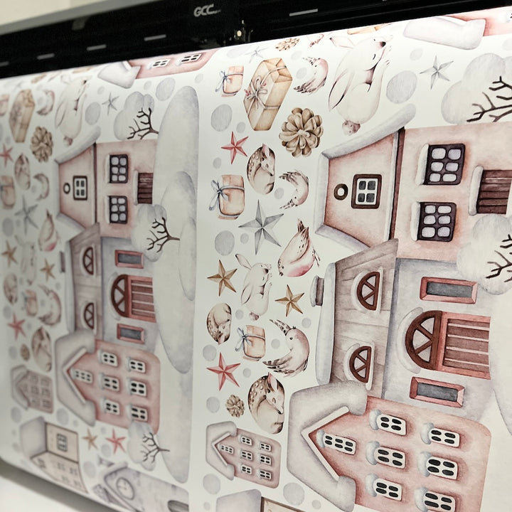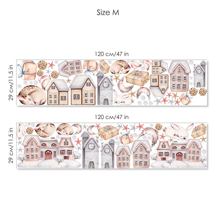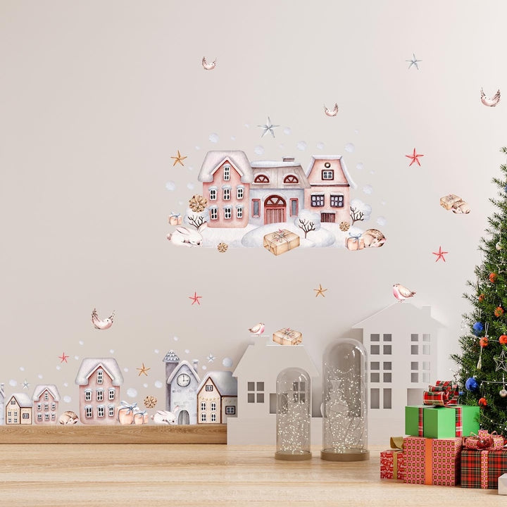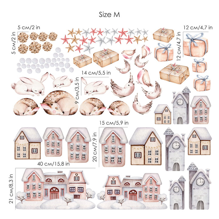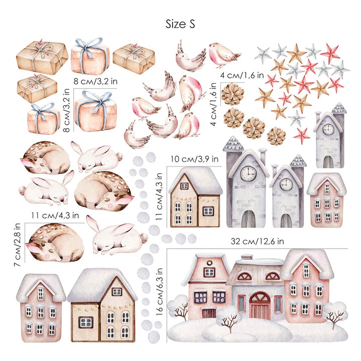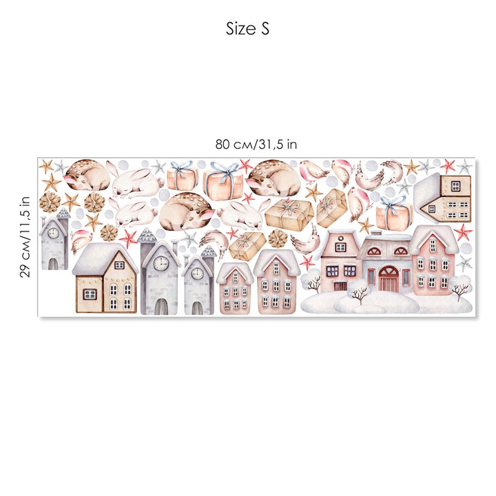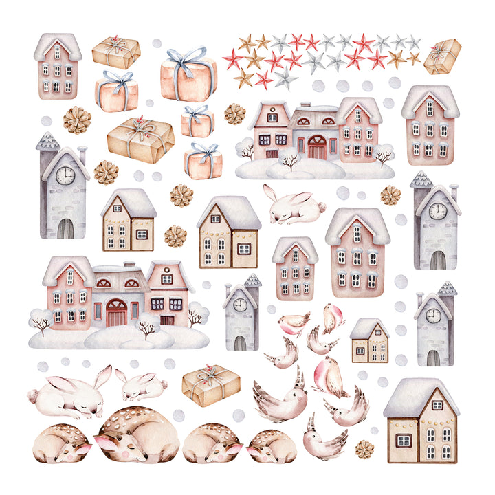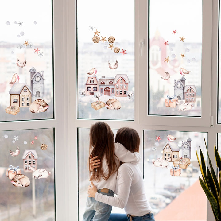 Naklejki na okno Świąteczna Wioska | Zwierzęta i Prezenty