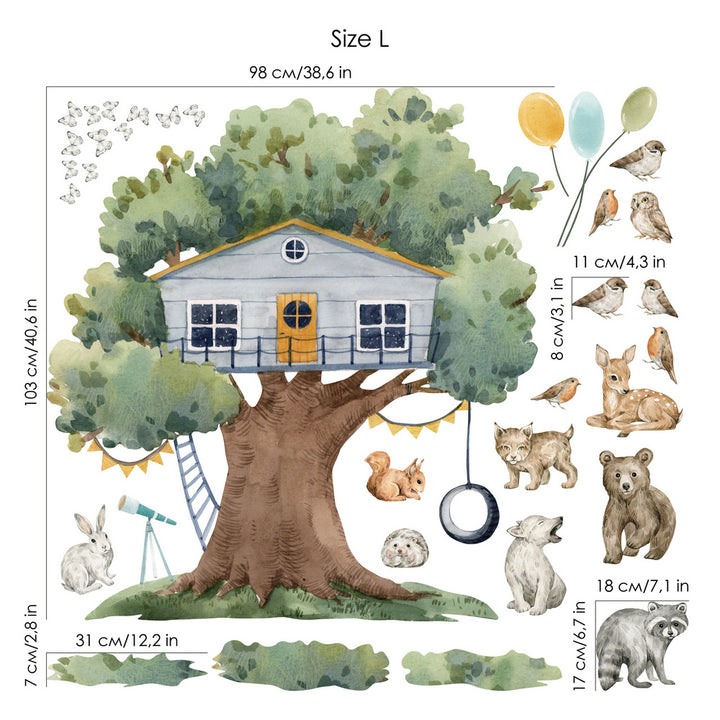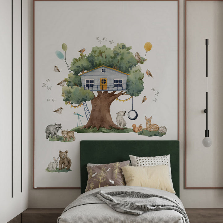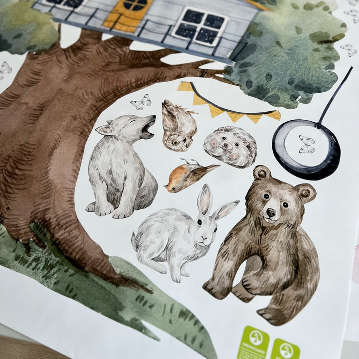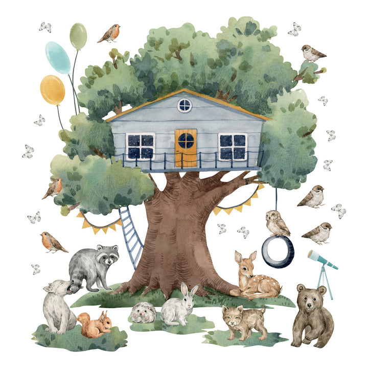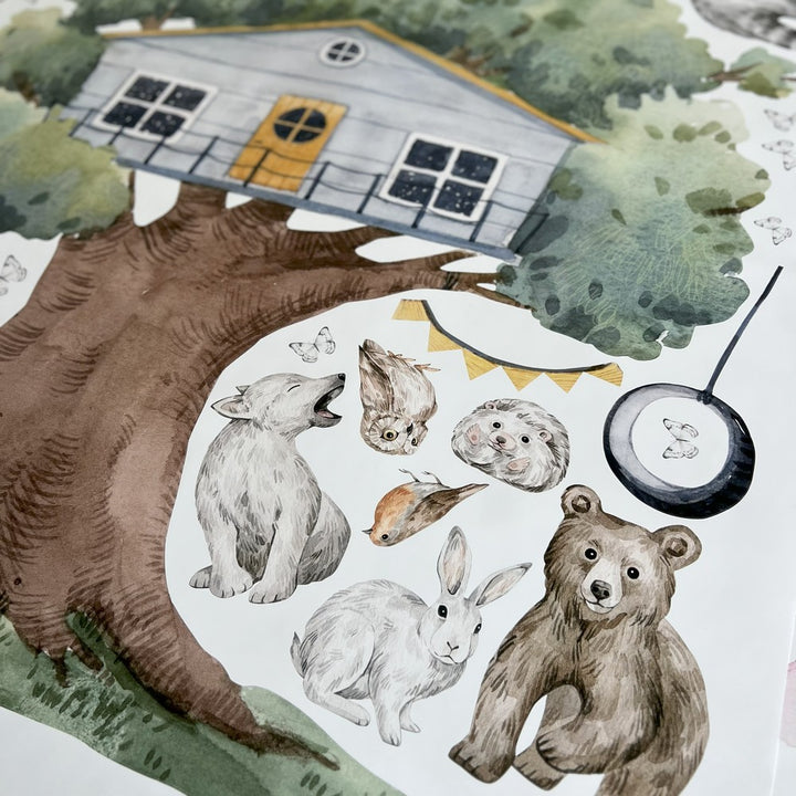 Naklejka na ścianę Domek na Drzewie | Leśne Zwierzęta Pokój Dziecka