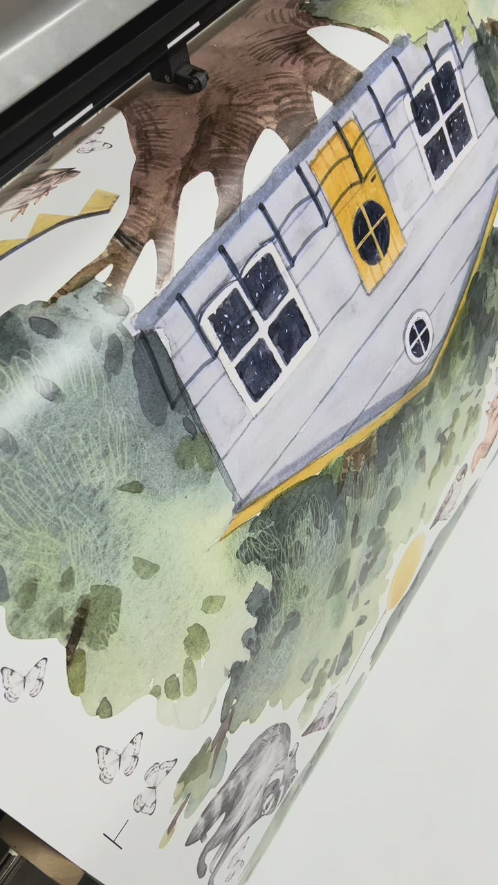Stwórz bajkową atmosferę z naklejką Domek na Drzewie. Miś, lis, jeleń, szop, zajączek, wiewiórka i ptaszki tworzą ciepły, leśny klimat. Idealna do pokoju dziecka lub sali zabaw. Ekologiczny druk, wyprodukowane w Polsce.