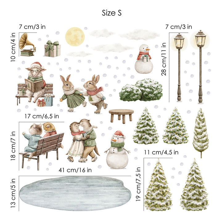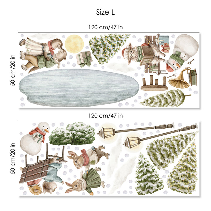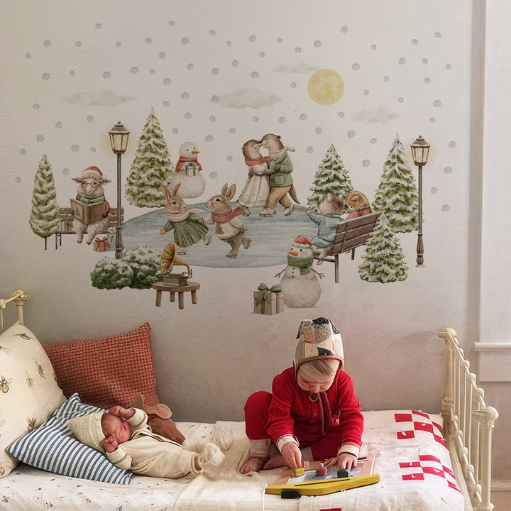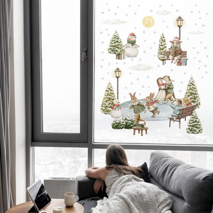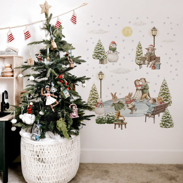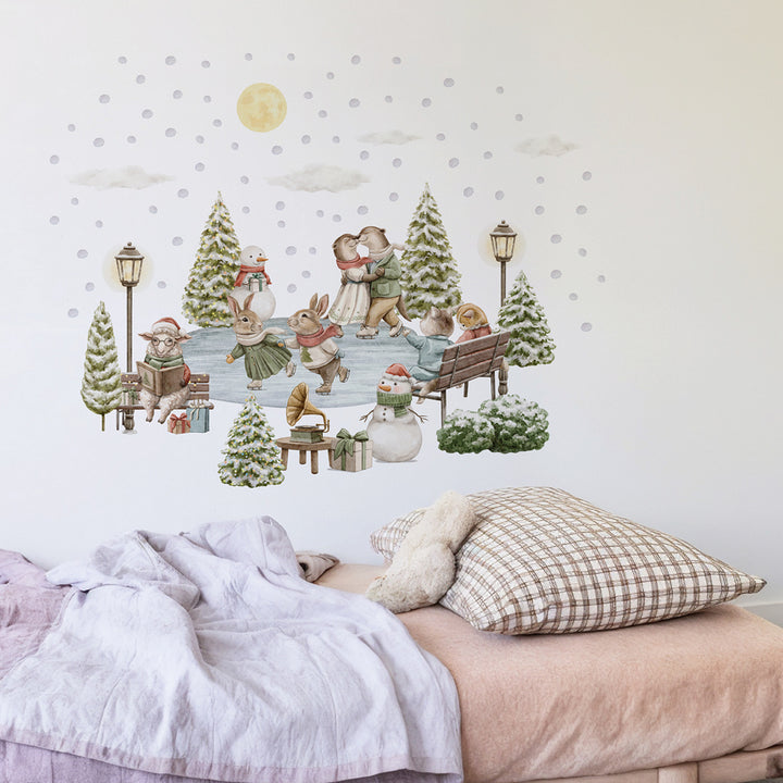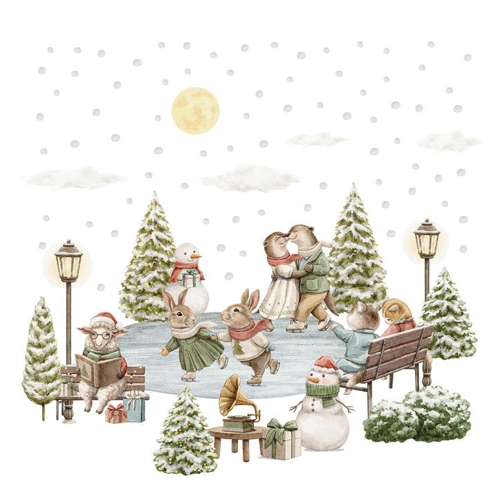 Naklejki na ścianę Zwierzęta na Łyżwach | Świąteczna Wioska