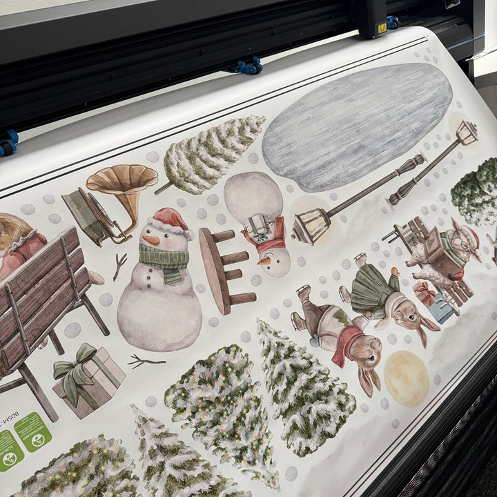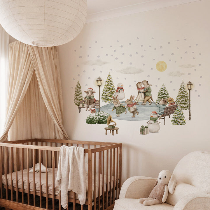 Stwórz zimowy klimat z naklejkami Zwierzęta na Łyżwach. Urocze króliki, bałwany i drzewa wprowadzą świąteczne ciepło do pokoju dziecka lub salonu. Naklejki są ekologiczne, łatwe w aplikacji i drukowane w Polsce...